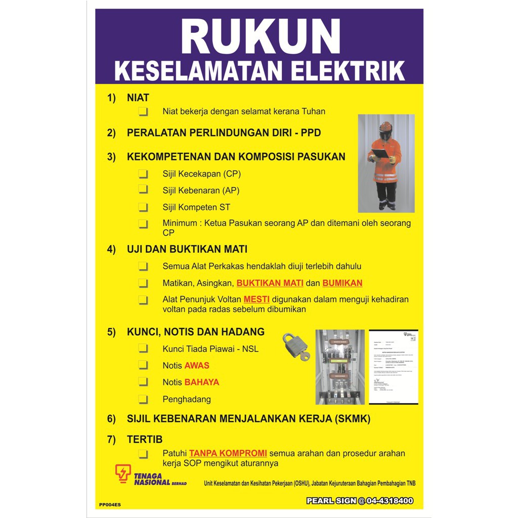 Jkkp Dosh Tnb Rukun Keselamatan Elektrik Pvc 400x600mm 1pcs Pkt Shopee Malaysia